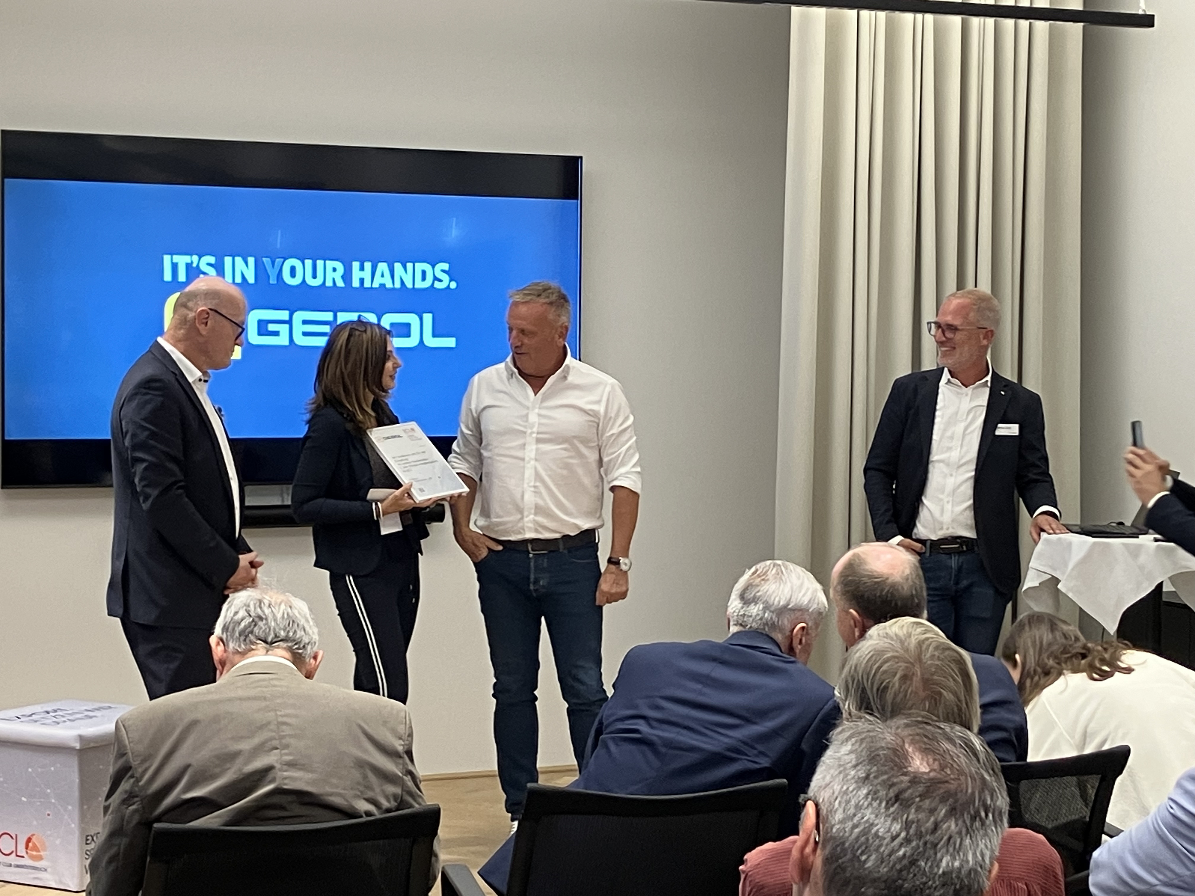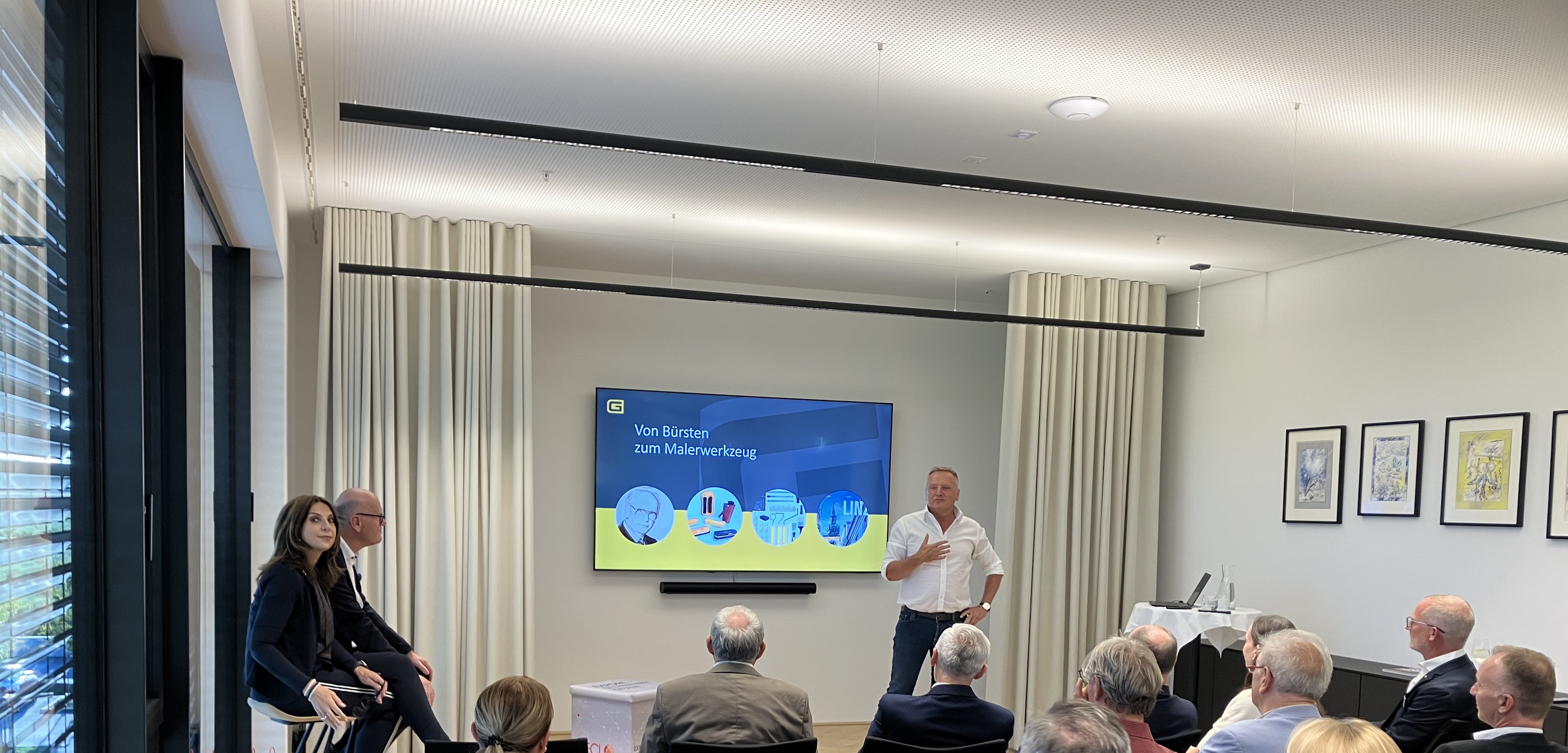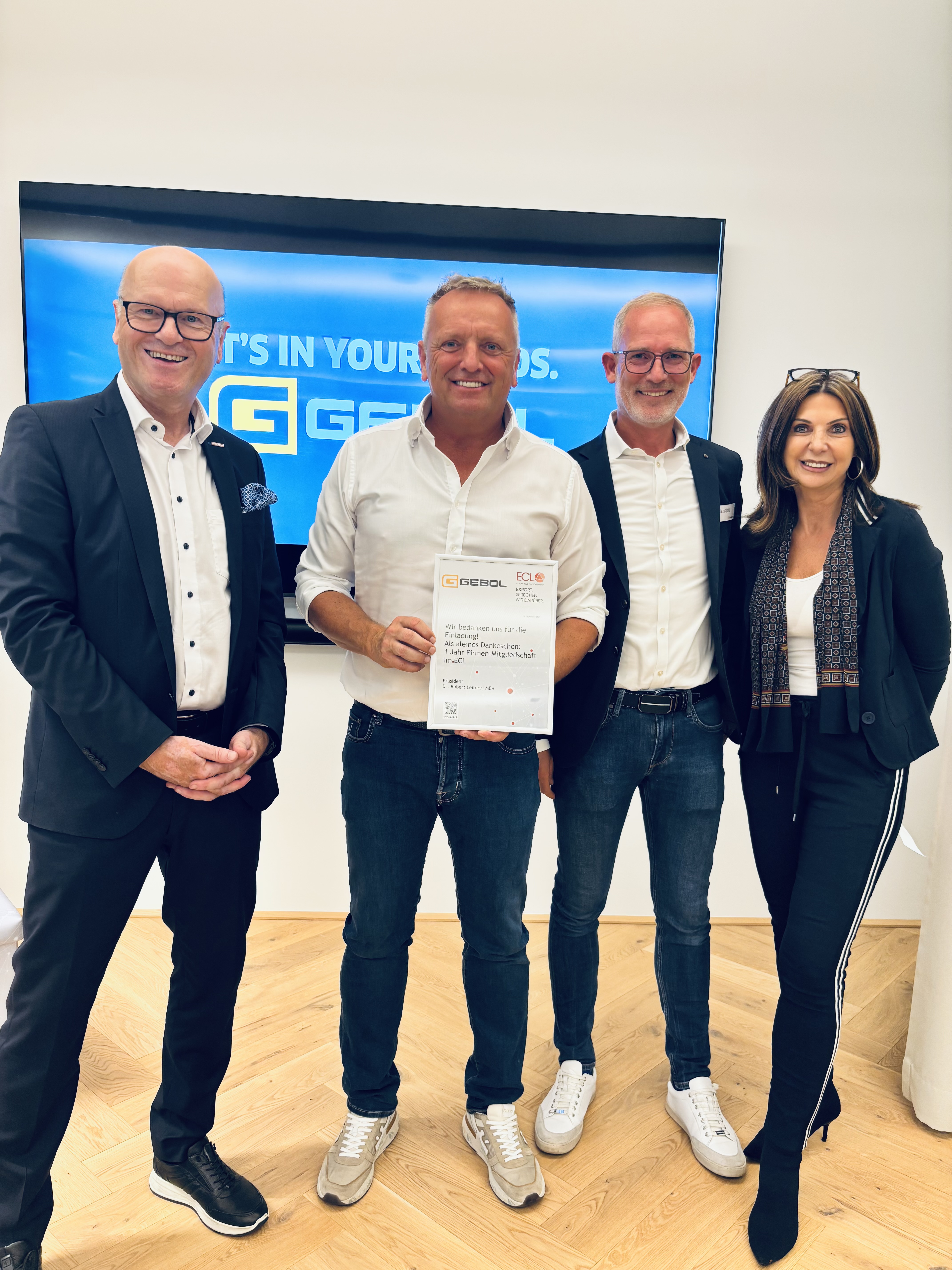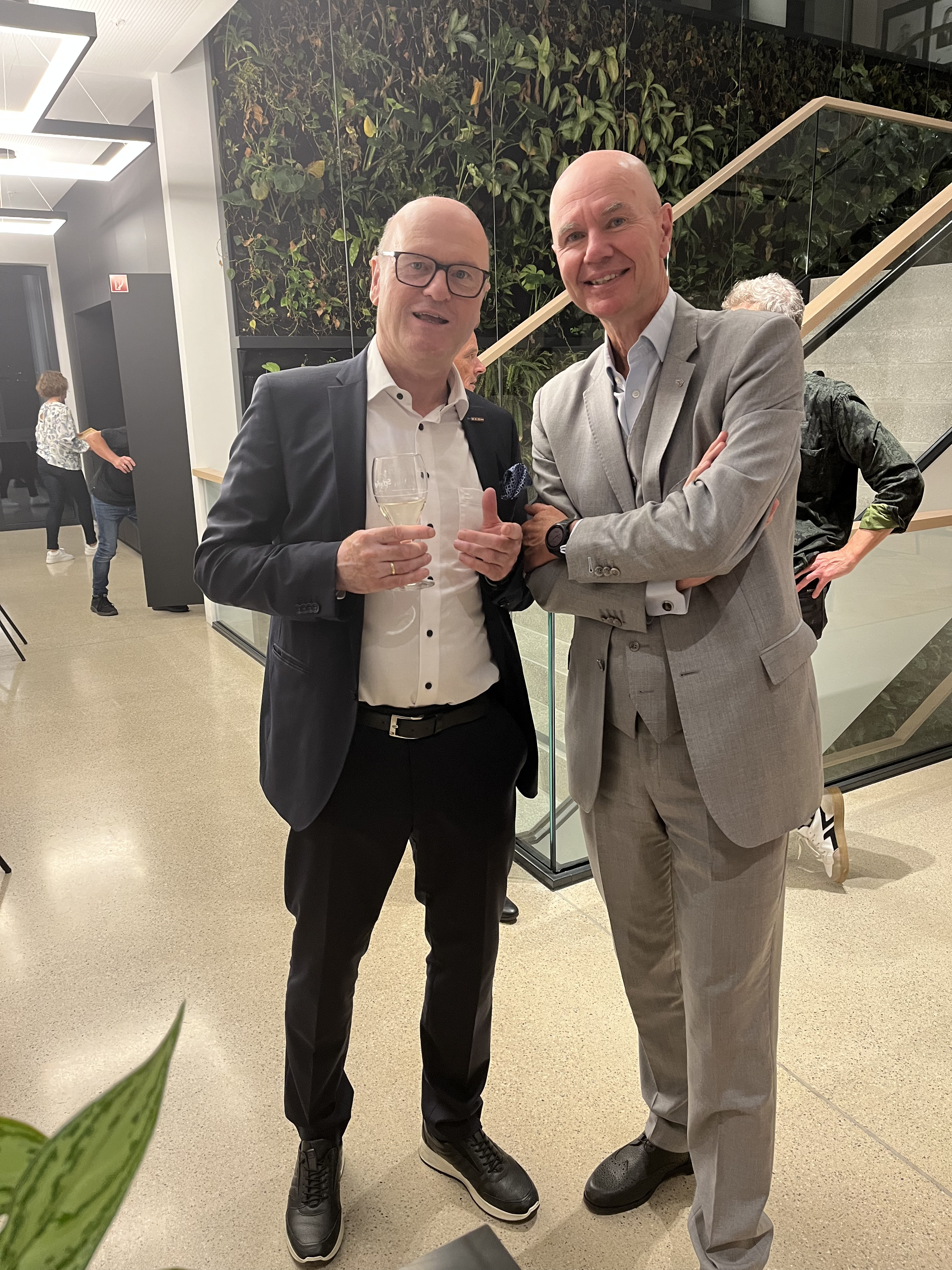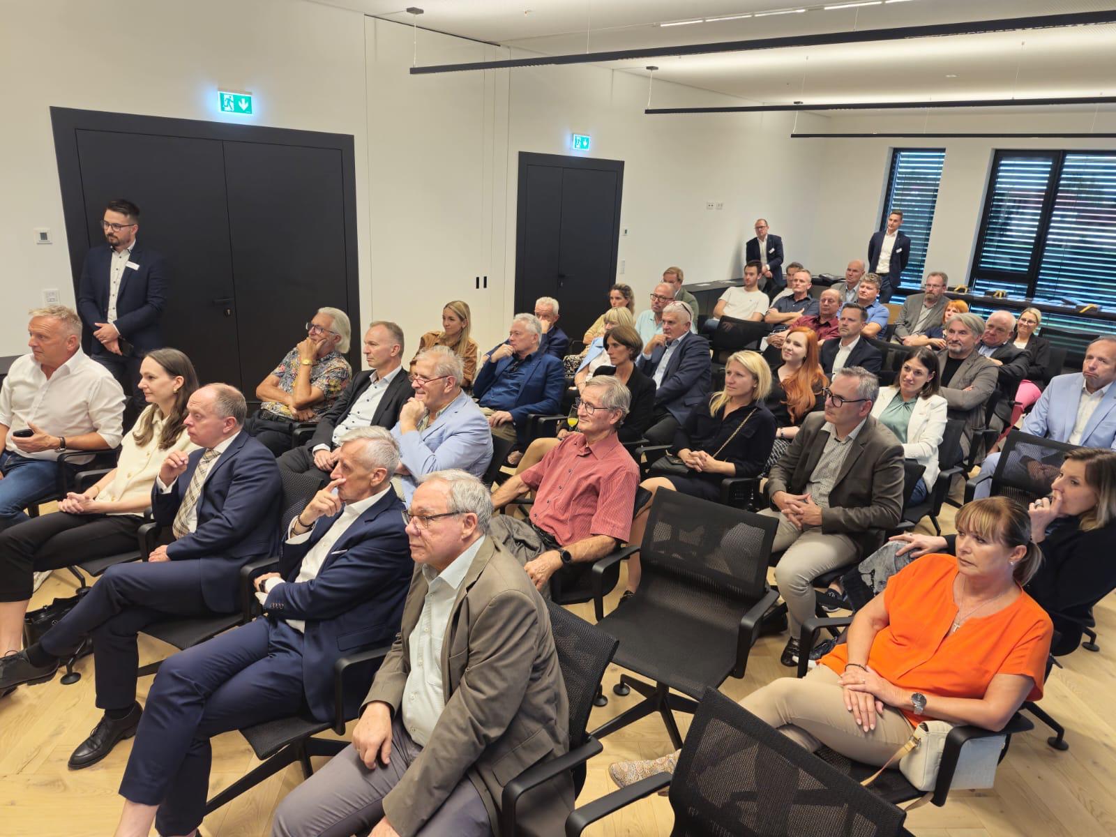 Ein besonderer Moment: Exakt drei Jahre nach dem Baustellenbesuch von ECL-Präsident Robert Leitner fand die Veranstaltung nun in den fertiggestellten Räumlichkeiten statt – ein schönes Symbol für Kontinuität und Verbundenheit. Das freundschaftliche Verhältnis zwischen Gerhard Frank und Robert Leitner unterstrich den sehr persönlichen Charakter des Abends.